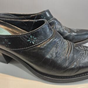 Ariat Desert Star Womens Size 7B Mules Leather Black Turquoise Western