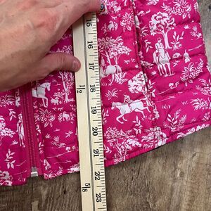 Ariat Goose Down Puffer Vest Pink Horse Pattern Equestrian Full Zip XS/S *Read. **Size tag and material tag have been removed; measurements are consistent with a size XS/S. Please Refer to all photos for condition and sizing. Minor stain on bottom front of vest.
