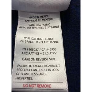 Navy color, no stains, no burns, no fading. excellent condition with the 2 exceptions listed above and anyone who wears this as a matter of routine knows how hardy and long-lasting they are.