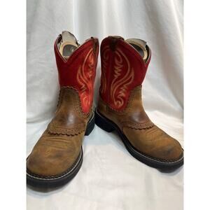 Ariat FatBaby Cowboy Boots Leather Brown & Red Women's Size 7B ~ 10014079