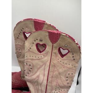 Howdy! These are Ariat Fatbaby Buckaroo Heart Cowgirl Boots, a rare find in size 7.5B! These boots feature a unique heart design on the shaft, perfect for adding a touch of country charm to your wardrobe. They're in great shape and ready for a new home. Whether you're hitting the ranch or just want to add some western flair to your style, these boots are a perfect choice.