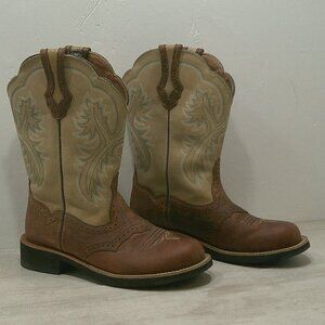 Ariat Fatbaby Heritage Western Cowgirl Brown Cream Leather Boots Size 7.5 B.