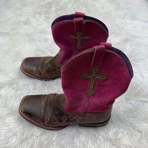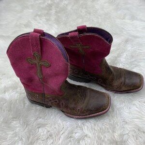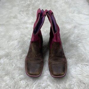 #AriatBoots #GirlsWesternBoots #AriatCrossroads #CowgirlStyle #Size4Boots #PinkBrownBoots #YouthCowgirlBoots #DurableFootwear #AriatKids #PrelovedBoots