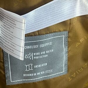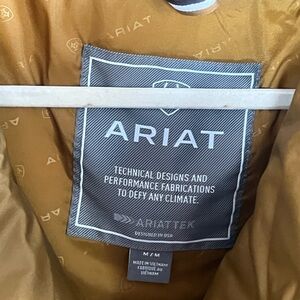 Gold jacket with technical design. Features Ariat branding.