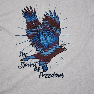 Show off your free spirit with this Ariat graphic T-shirt. This comfortable T-shirt features a round neck, short sleeves, and a pullover closure for easy wear. Its made from a soft knit fabric thats a blend of polyester and cotton, making it machine washable for easy care. The beige color and solid pattern make it a great addition to your wardrobe for any occasion, including travel, beach outings, parties, casual wear, gym sessions, workwear, and more. The T-shirt is perfect for those who love sports and Western themes. It comes in a regular fit and size 2XL, and is suitable for all seasons including winter, summer, fall, and spring. The shirt is branded with the Ariat logo and features a spell-out of the word 'Freedom', adding a touch of personality to your outfit. Enjoy the quality and comfort of this T-shirt without worrying about its condition as it is in perfect condition.