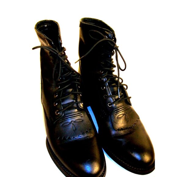 Step up your boot game with these stylish Ariat Heritage Lacer II Boots in black leather. Made for women, these mid-calf boots feature a round toe shape, lace-up closure, and a high block heel for added height. Perfect for any occasion, whether it's traveling, partying, or casual wear, these boots are a great addition to your wardrobe.Crafted from high-quality leather with a solid pattern, these boots are built to last and provide comfort with their B shoe width and comfort features. The Ariat Heritage Lacer 2 Boots are perfect for any season, including winter, summer, fall, and spring. Don't miss out on this amazing opportunity to upgrade your shoe collection with this modern, hipster, festival, or southwestern themed boots! Great Condition!