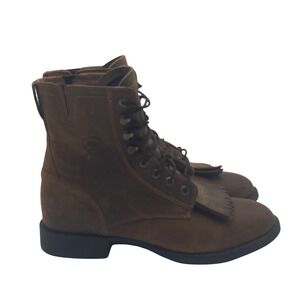 Keywords: Ariat, ankle boots, lace up boots, western boots, cowgirl boots, brown boots, leather boots, womens boots, size 7B, work boots, casual boots, fringe boots, roper boots, riding boots, vintage boots