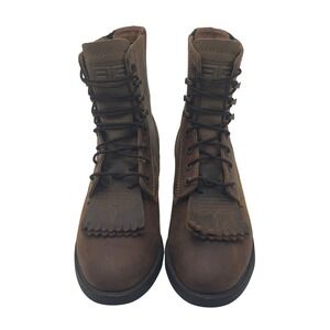 Step into a realm of rustic charm with these Ariat ankle boots, where timeless Western aesthetics meet everyday functionality. These boots present a rich, earthy brown hue, creating a vibe of rugged authenticity. The classic lace-up design is accented by a charming fringed detail at the vamp.