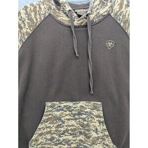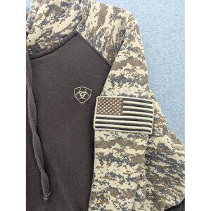 Ariat Hoodie Mens Large Brown Camo Patriot Hood Pullover Flag Patch Fleece Logo