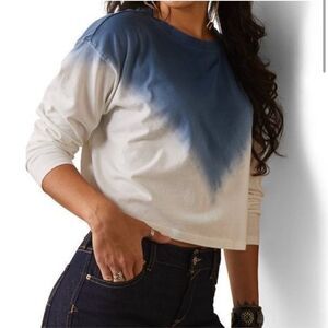 Great fit, cute design, soft fabric. You'll love everything about this long sleeve tee.This oversized jersey top features a cropped hem and drop shoulder seams for a relaxed fit, a cropped body style, and a cotton jersey with dip dye. Materials - 100% cotton.