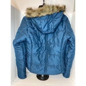The jacket is made of polyester and has a puffer style that provides warmth during winter and fall seasons. The hood is lined with fur and zips up for extra protection against the cold. The jacket has a zipper closure, pockets, and is machine washable for easy care. This jacket is a petite size and is suitable for women who want to look chic and feel comfortable. No Issues spotted No smells, stains All zippers intact and work Armpit to armpit 36 Shoulder seam to bottom seam 22 Shoulder to shoulder 15.5 Sleeve length 24 Waist laying flat 19 Please see all pics If you have any questions please message me. Thanks again Ships fast