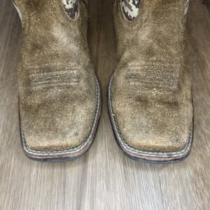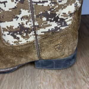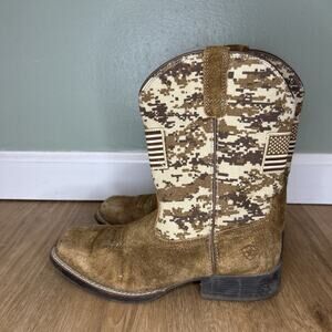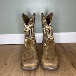 Ariat Kid's 3 Cowboy Boots Sport Patriot Brown Leather Western Flag 10019913 Suede Canvas Rodeo Ranch