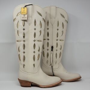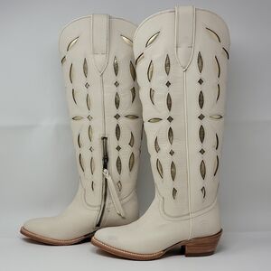 Step out in style with these elegant cream western boots. Perfect for any occasion, these boots offer both comfort and fashion.