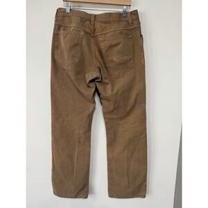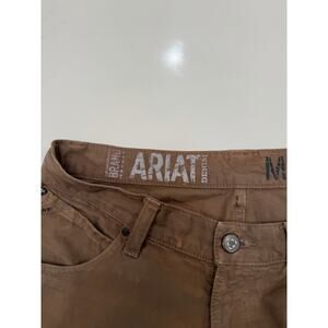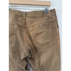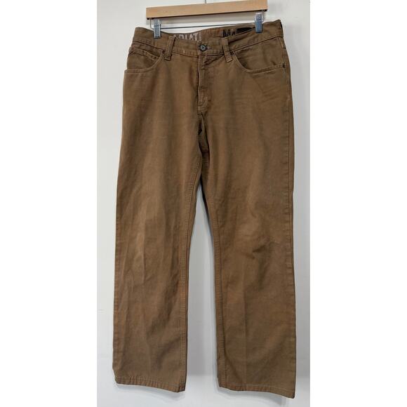 Ariat brown casual pants with a classic straight-leg fit. Durable cotton canvas feel with a broken-in wash, mid-rise waist, and 5-pocket styling. Western, ranch, workwear, utility, normcore, and everyday casual aesthetic. Great for work or laid-back wear. Note. There is some discoloration in a few areas. See photos for details. Size 32x34.