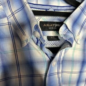 Ariat Men Small Shirt Pro Series Button Down Blue White Long Sleeves Plaid