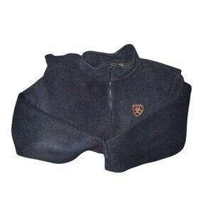 Ariat Mens Black Pullover 1/4 Zip Embroidered Logo Fleece Sweatshirt Sz Large