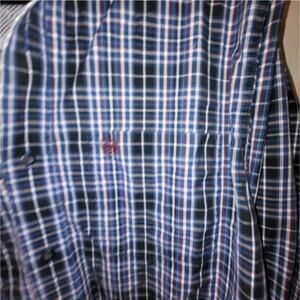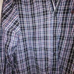 Stylish men's button-up shirt with a blue plaid pattern. Perfect for casual or formal occasions.
