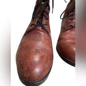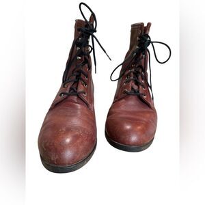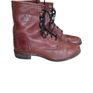 Ariat men’s brown ankle work boots, size 8.5. Leather. There are a few scuff marks, but otherwise in excellent condition. 1938