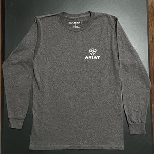 Classic Ariat long sleeve tee in charcoal. Features logo on chest. Ideal for casual wear.