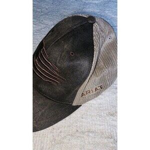 Ariat Mens Hat Baseball Cap Snap Mesh Flag Embroidery Brown