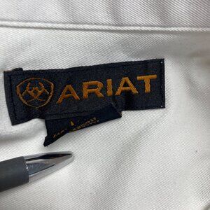 Ariat Mens Long Sleeve White Button-Up Western Shirt Brushpopper Work