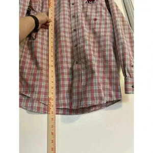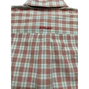 Ariat Mens M Red Plaid Pro Series Button Up Long Sleeve Vented Western Shirt in very good condition.