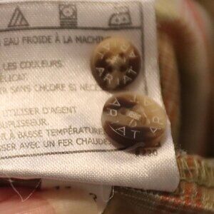 Good Used condition. No holes or flaws. Does have stain on one sleeve above cuff as shown in last two photos.