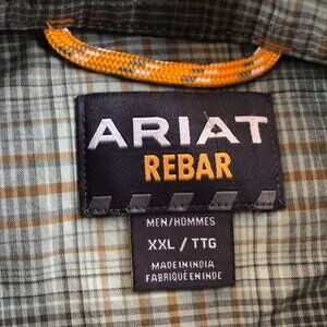 Ariat Mens Rebar Shirt Size XXL Casual Short Sleeve Plaid Button Up Green Pocket