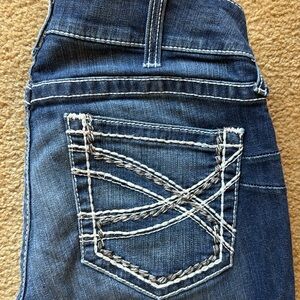 Size 31S. Ariat Mid Rise bootcut. Dark denim. Beautiful stitching pattern.