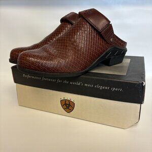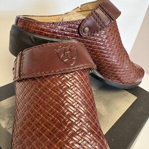 Ariat Mules Womens Rattan Brown Leather Woven Slip On Comfort Clogs