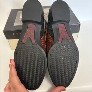 Features: Slip-on design, woven leather upper, cushioned insole, durable sole