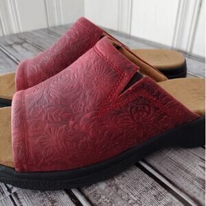 Ariat | NWOT Bridgeport Red Floral-Embossed Slide-On Sandals Size 11B