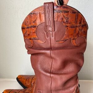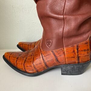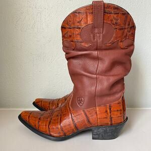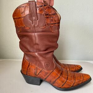 Ariat Orange Brown Exotic Fashion Cowboy Boots Croc Embossed Slouch Size 7.5 B