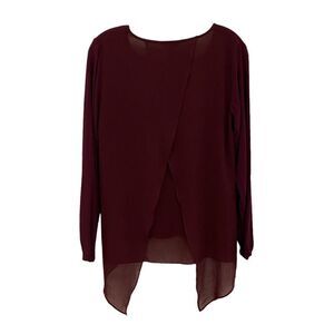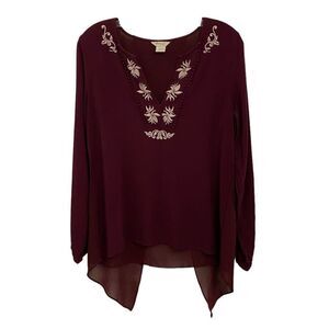 Ariat Poet Top Burgundy Embroidered Split Neck With Cut Chiffon Handkerchief Hem