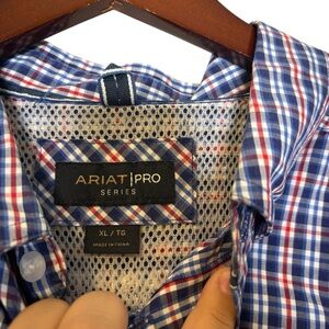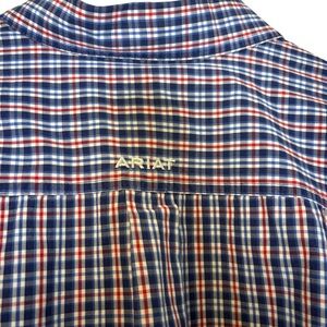 Ariat Pro Men’s Plaid Red Blue Striped Collared Embroidered Shirt- Size XL