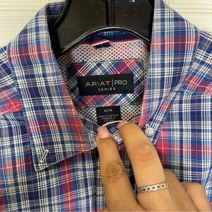 Ariat Pro Series Blue Red Plaid Long Sleeve Button Shirt Mens Sz M Medium