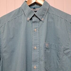 Ariat Pro Series Button Down Shirt Mens M Teal Plaid Short Sleeve Rodeo Festival