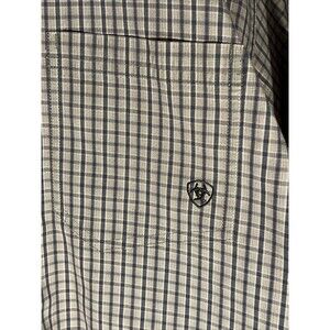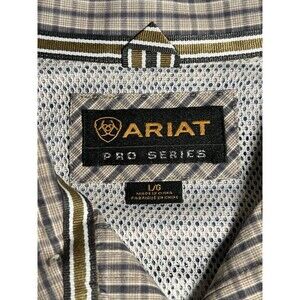Ariat Pro Series Long Sleeve Button Down Shirt Mens Size L Beige Blue Checkered