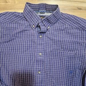 Ariat Pro Series Shirt Men’s Medium Blue Plaid Long Sleeve Button Down