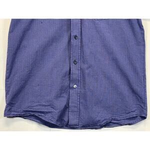 Upgrade your western wear with this Ariat Pro Series button-down shirt. Designed for performance, this shirt features Ariat's "Pro Series" stretch fabric and breathable mesh-lined yoke for maximum comfort and mobility. The blue and purple micro-check pattern offers a classic look, complete with a button-down collar, single chest pocket with logo embroidery, and adjustable cuffs. Condition: Great pre-owned condition with no visible stains or holes; the inner tag is crisp and legible. Measurements: Pit to Pit: ~20.5" Length: ~29" Sleeve Length: ~25.5"