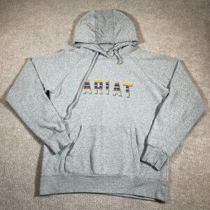 Ariat Pullover Hoodie Sweatshirt Mens Size Medium Grey Spellout Western Casual Lightweight Cowboy