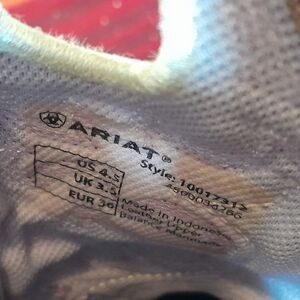 Good pair of brown and purple leather boots. Square toes. Mid calf. These are in used condition but still a great pair of boots. Size 4.5 from Ariat.