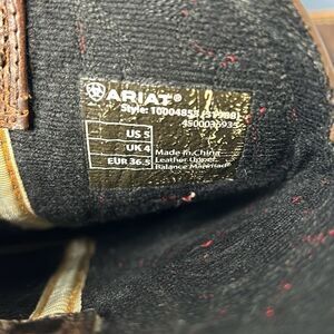 These are Kids Sz 5 (UK 4 EUR 36.5 and Japan 24) however, my daughter wore them to Zach Bryan concert and she is an 8. They are is EUC with many rodeos left in them. Brown with red stitching. Square toe.