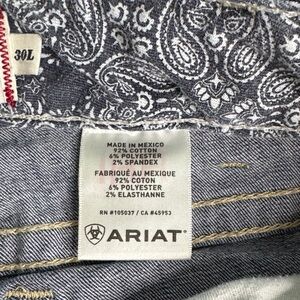 Ariat jeans with a gray paisley design. Perfect for casual outings.