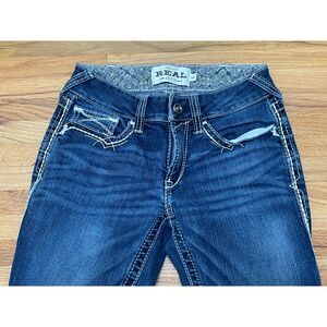 Ariat Real Women's 26 Blue Jeans Denim Cotton Bootcut Mid Rise Faded Grunge.