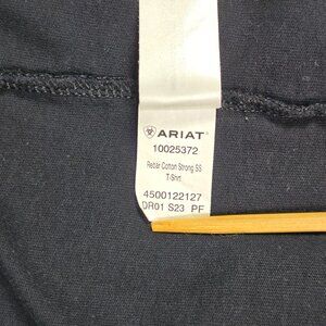 Comfort meets durability in this Ariat Rebar Cotton Strong short sleeve t-shirt. Designed for hardworking wear, it features a chest pocket with logo patch, soft yet strong cotton blend fabric, and classic crewneck fit. Black color in size 3XL. Excellent condition with no signs of wear.