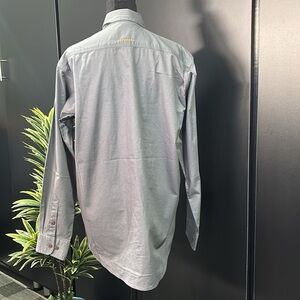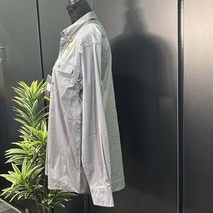 Long sleeve. Button down collar and placket. 5 oz Durastretch ripstop. Drop tail hem. Two button chest pockets with hidden lens cloth. Greater Arm Mobility and Performance Stretch, Abrasion resistant and stain resistant, Triple needle stitched main seems, Solid pattern throughout.