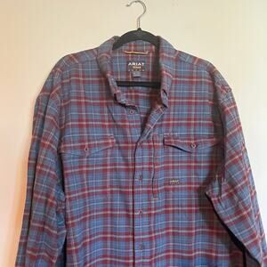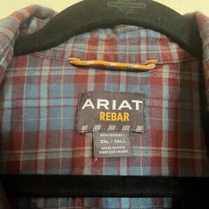 Ariat Rebar Shirt Button Down Long Sleeve Plaid Flannel Blue Red Mens 3X Tall