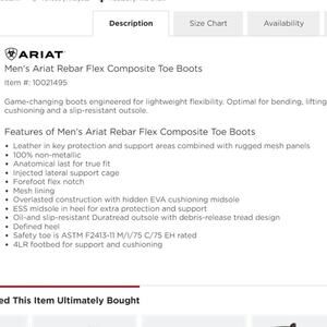 Ariat Rebar Work Boots Composite Toe Men's size 9.5D 10021495