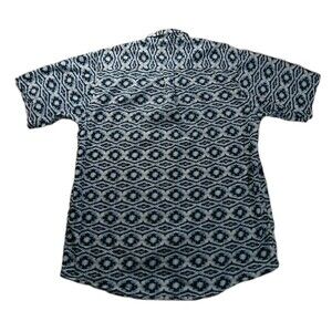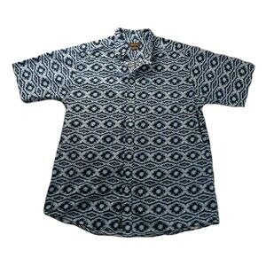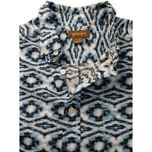 Ariat Retro Western Shirt XL-Tall Blue Black Ikat Print Short Sleeve
